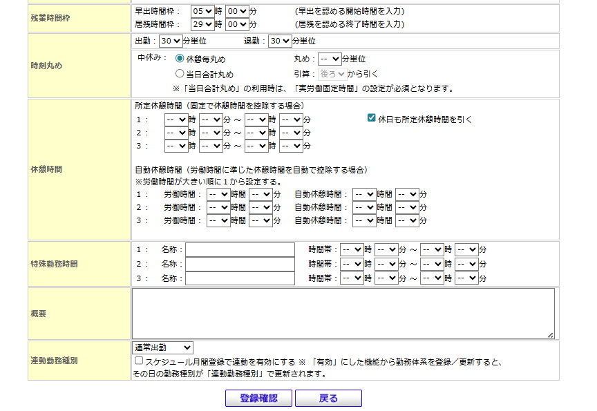 入力した内容に間違いがなければ【勤務表設定情報確認画面】で登録ボタンを押します。